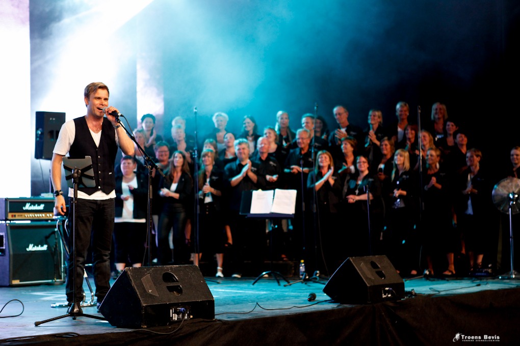 Christian Ingebrigtsen og koret “Shimmer” fra Kvinesdal leverte en god konsert i Sarons Dal Hallen søndag kveld. Shimmer er et nytt gospelkor i Kvinesdal med en allsidig representasjon av bygdas folk, inkludert presten i Kvinesdal. Christian Ingebrigtsen har sin bakgrunn fra Paul McCarthys skole i England og slo bl.a. igjennom som artist i gruppen A1 på 80’ tallet.